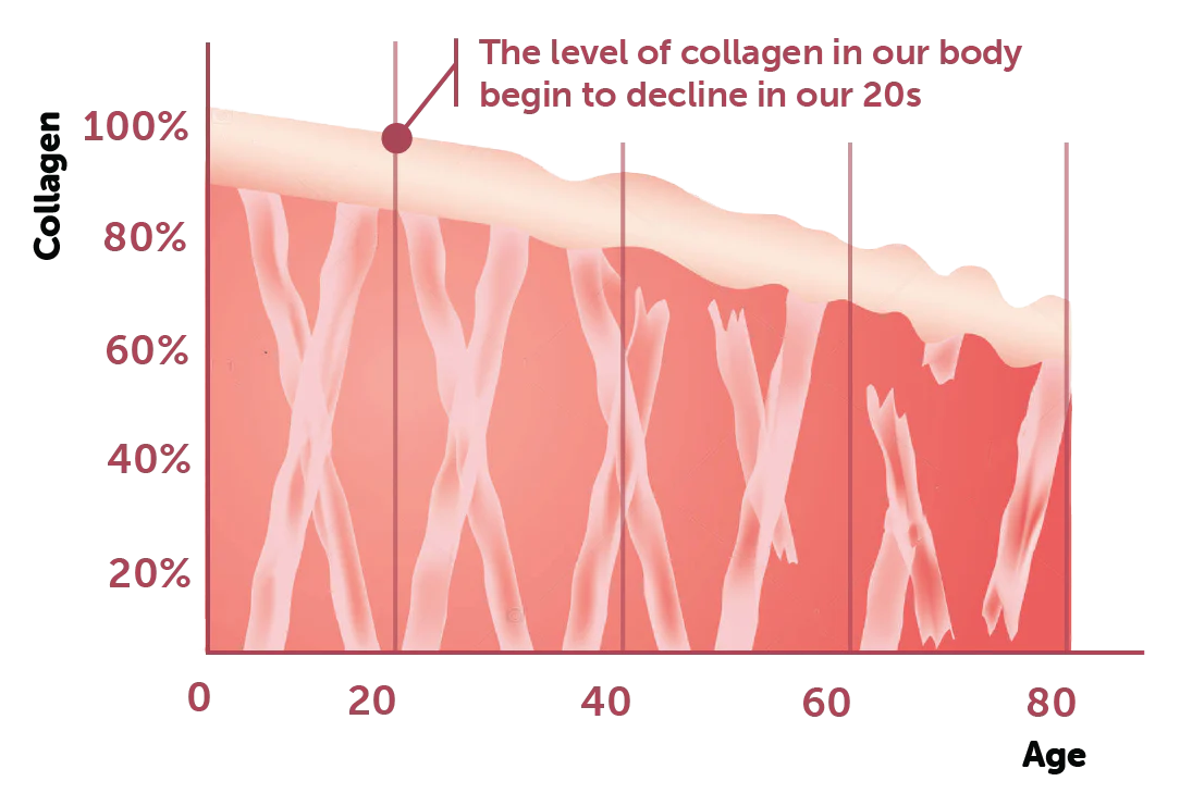 Here’s a graph showing the decline in collagen that makes skin firm in women over 20...